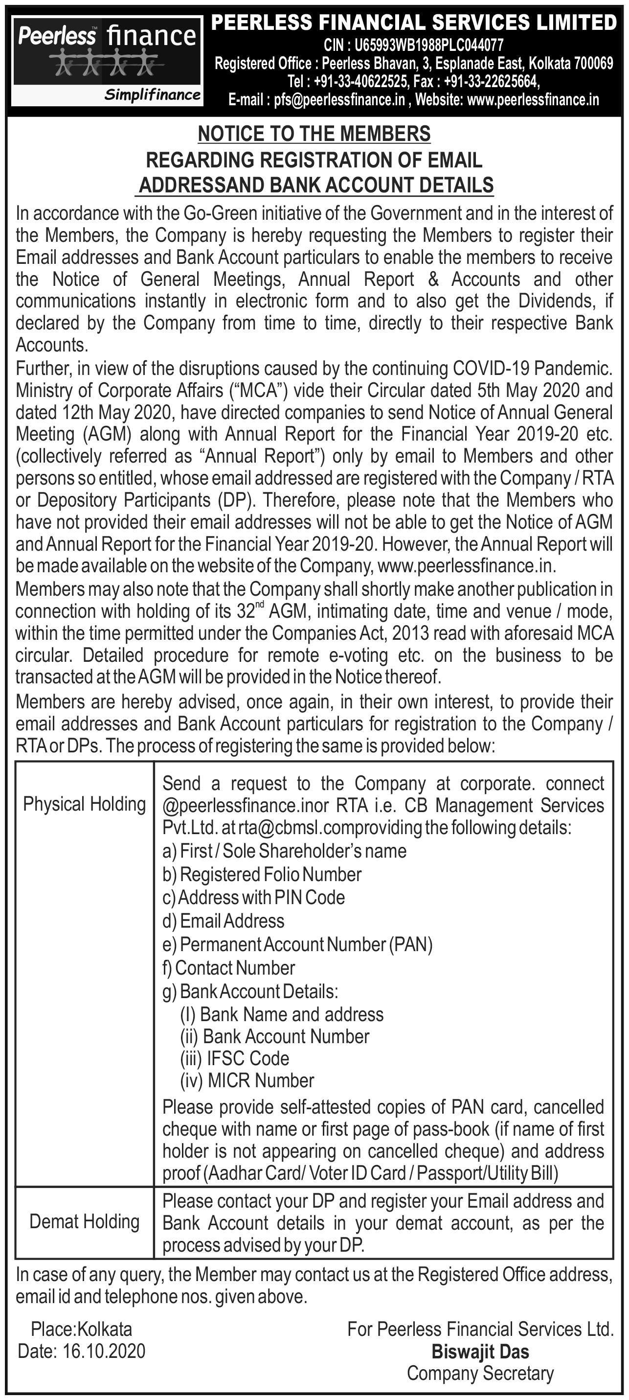 Notice to the members regarding registration of Email, Address and Bank Account Details 2019-20 - English